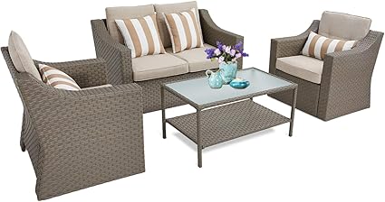 Homall 4-Piece Outdoor Patio Furniture Set. Bigzzia Rattan Garden Furniture Set 4 piece Patio Rattan furniture sofa Weaving Wicker includes 2 Armchairs1 Double seat Sofa and 1 table 44 out of 5 stars 926 1 offer from 26999.